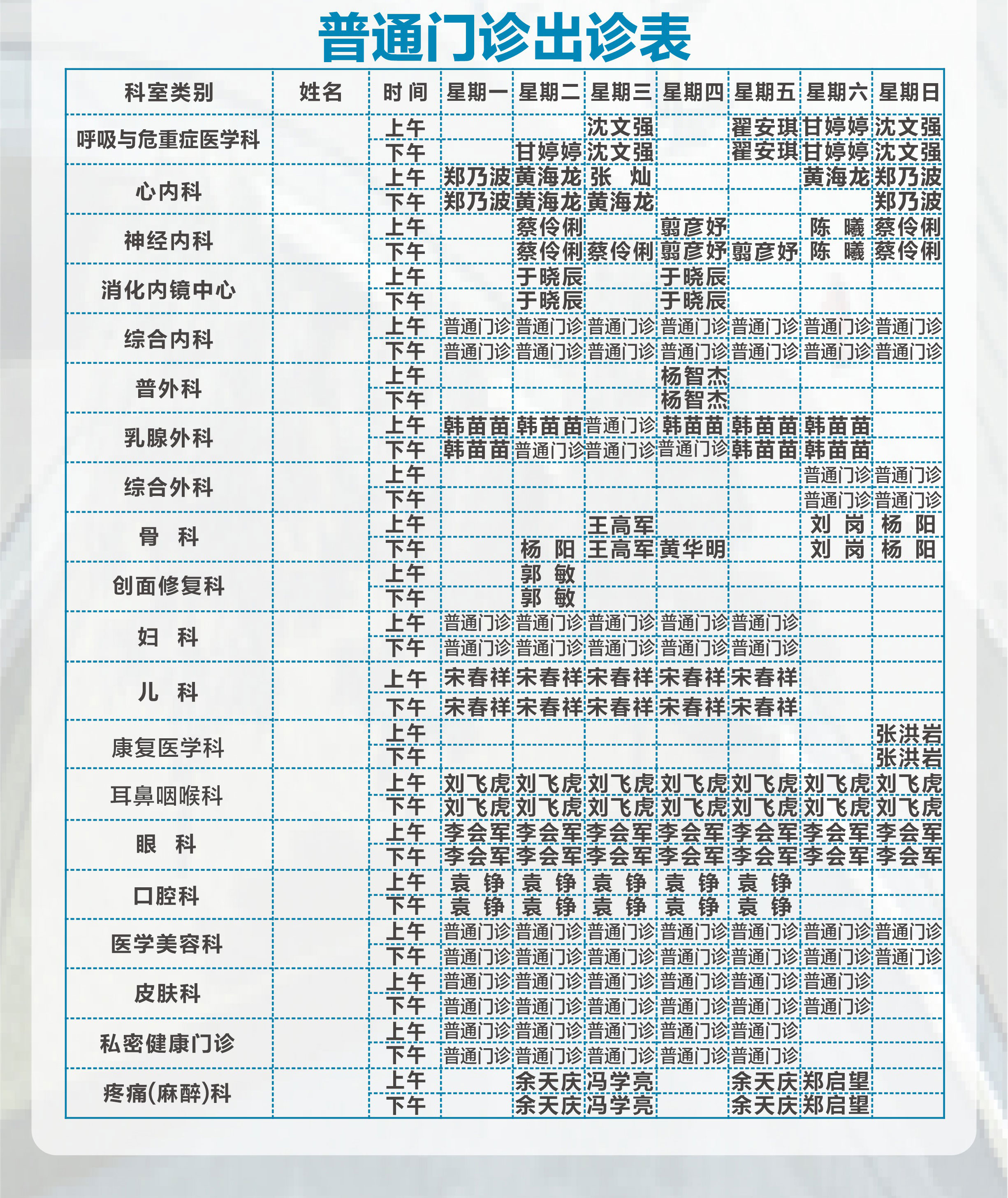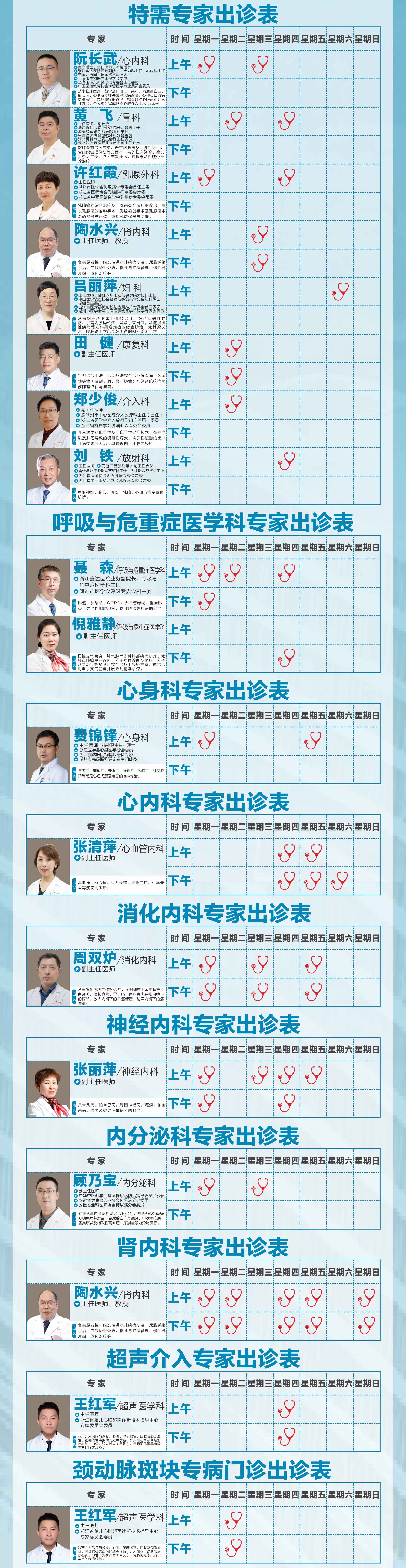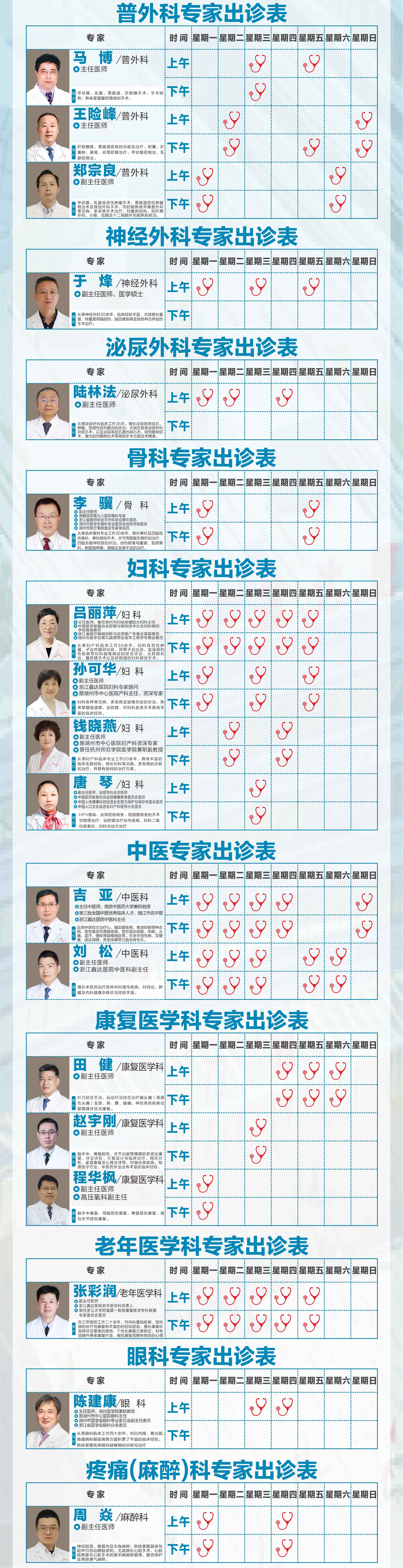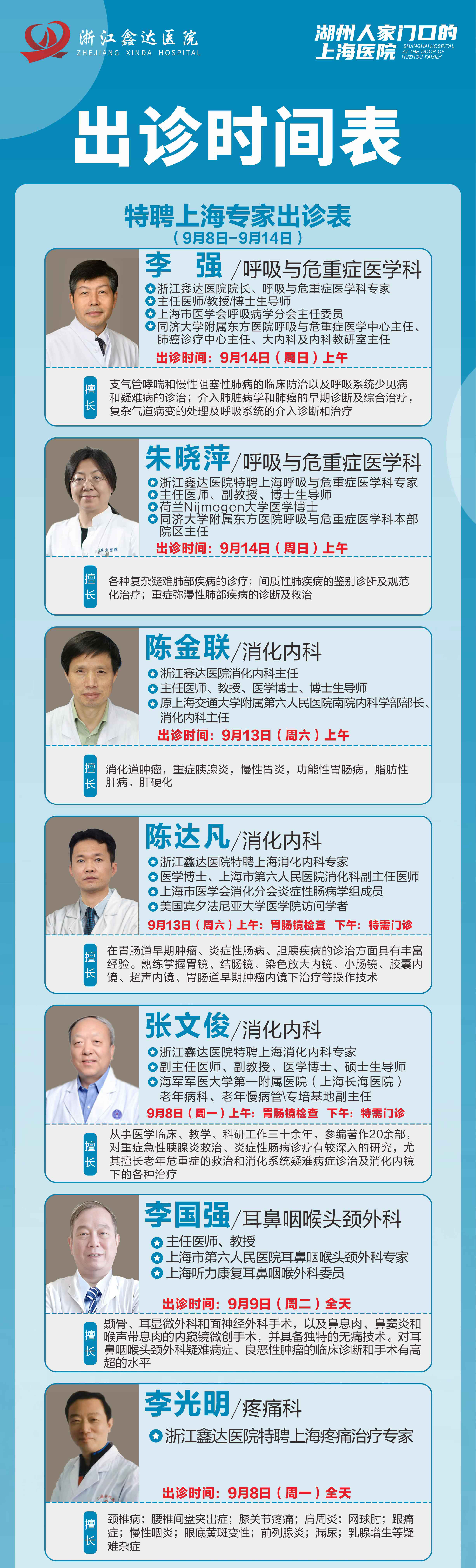 【就诊指南】浙江鑫达医院9月8日-14日专家门诊出诊表
