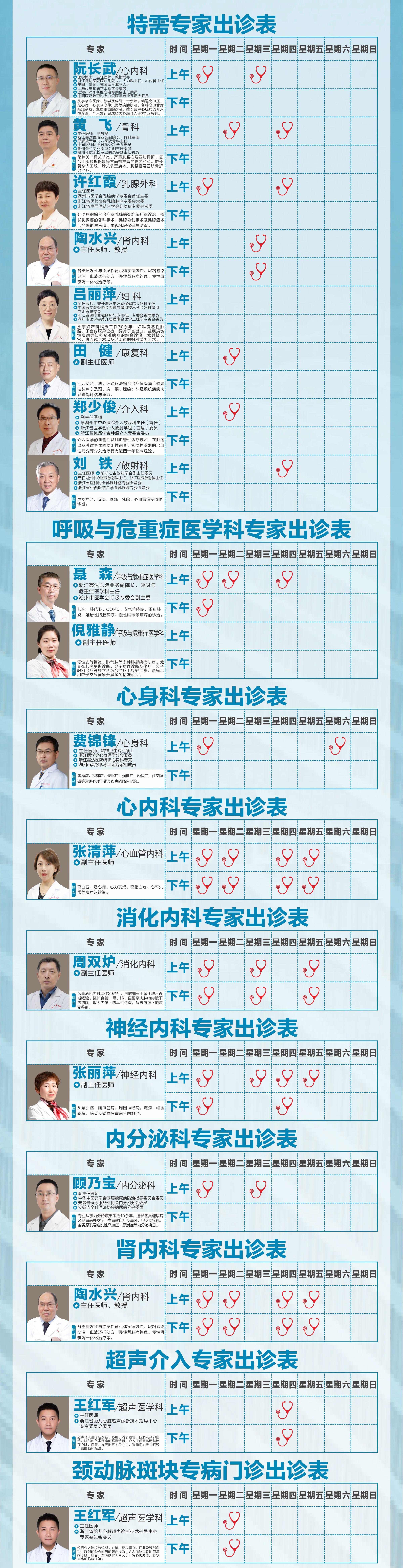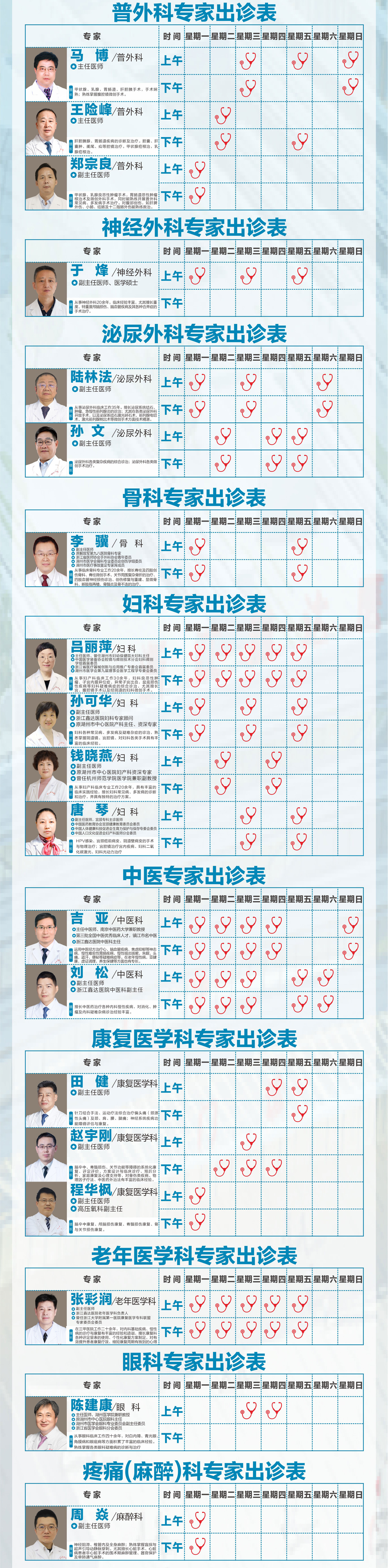 【就诊指南】浙江鑫达医院9月15日-21日专家门诊出诊表
