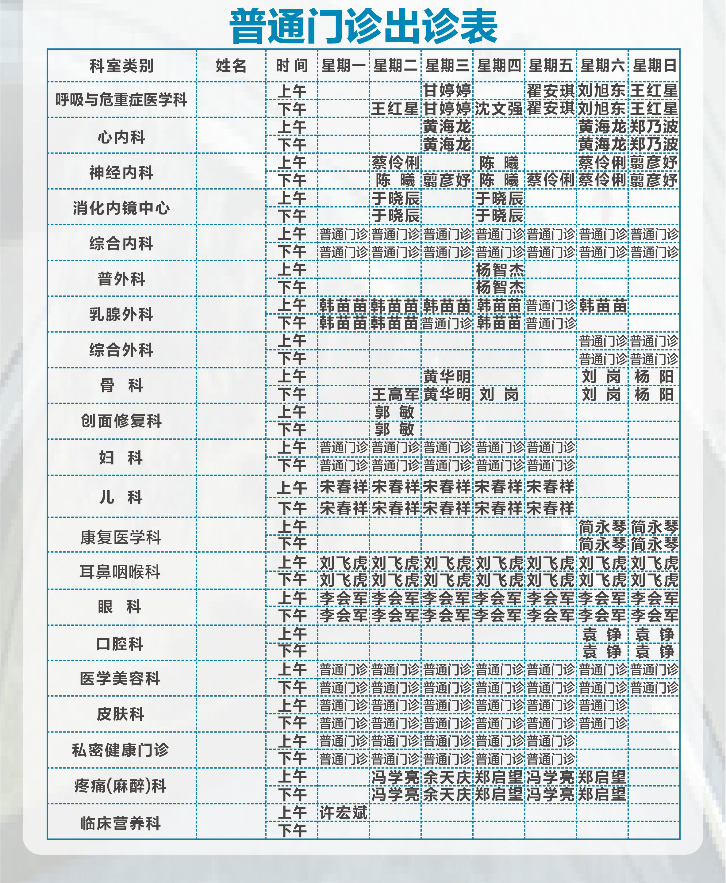 网站首页  > 就诊指南  > 门诊排班  > 查看详情