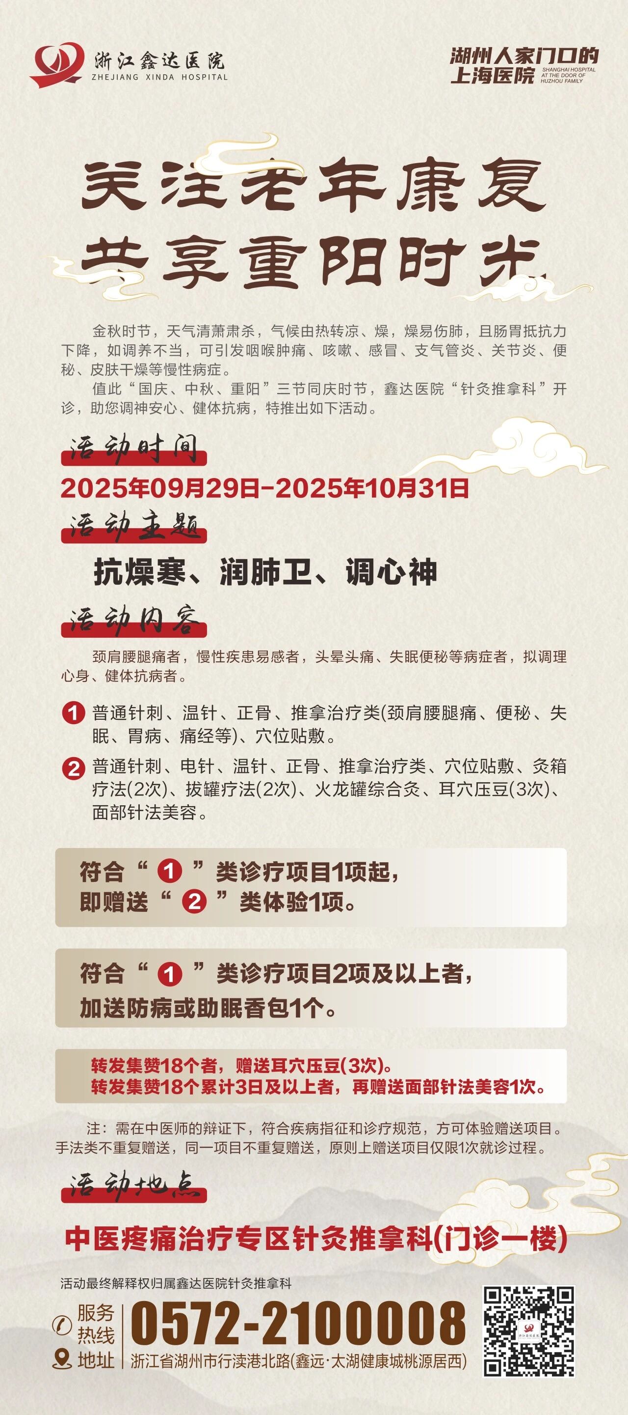 9月29日,湖州师范学院医学院附属浙江鑫达医院门诊楼一楼中医疼痛治疗专区—针灸推拿科将迎来正式开诊的日子!